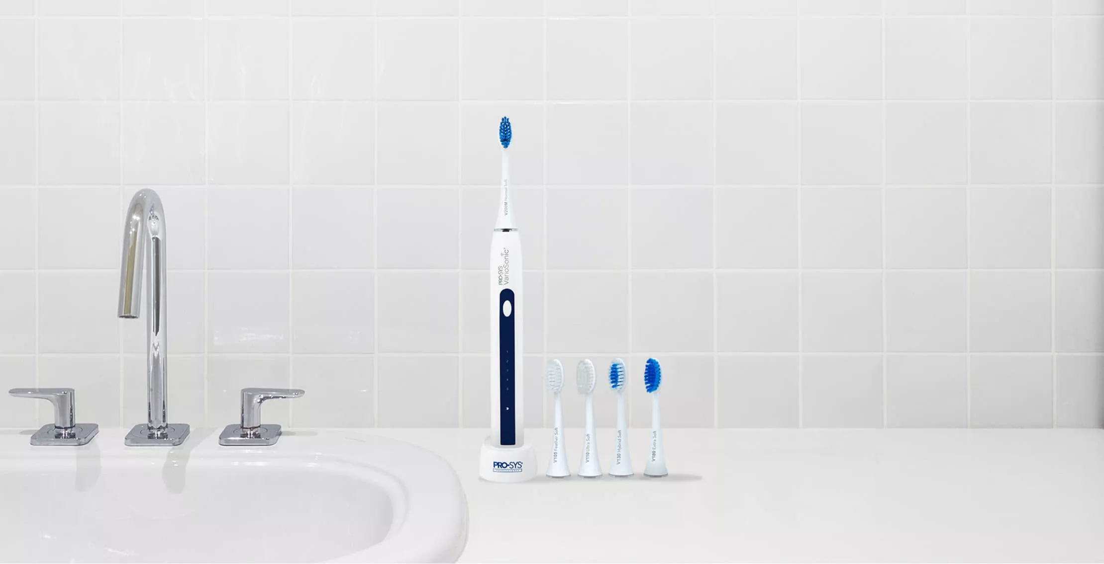 Begin with our two most popular brush heads. Add additional brush heads and accessories anytime. PRO-SYS® VarioSonic® delivers the perfect, essential combination of unique brush heads and five distinct cleaning modes. Mix and match to personalize VarioSonic® for your ideal combination of soft filaments and advanced brush motion. It’s the best electric toothbrush whether you have normal, healthy gums or periodontal issues like sensitive teeth and gums. Get the brighter, whiter smile you’ve always wanted in our most affordable kit.